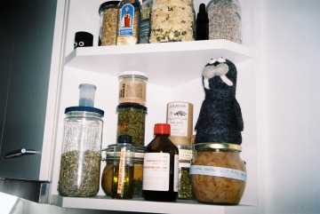 Kromě těch samozřejmých jako je nůž a utěrky bych asi řekla malý nádobíčko. Mám ráda malý mističky, malý talířky a malý lžičky, ty nejvíc trpasličí. Podle mě jsou to strašně zásadní věci v mým životě, protože z nich všechno chutná tisíckrát líp. Všechno jíš pomalejc, víc tě to zastaví, vychutnáš si to, a ještě je to hezká věc.