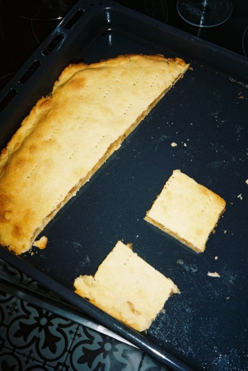 Chtěla jsem si vyzkoušet nějaké rodinné recepty, které důvěrně znám z pozice strávníka, ale sama jsem je vlastně nikdy nevařila. První je bramboračka, která není asi ničím specifická, ale zároveň to neumím posoudit, protože jsem jí nikdy nejedla jinde než doma. Je to víc než 13 let, co jsem jí jedla naposledy. Druhý je náš štrůdl, který už asi specifický je, protože je placatý a dělá se z tvarohového těsta. V plánu byl tříchod, ale ty malý jídla, svačinky, který by se daly použít jako předkrm, se nehodily k tomu zbytku. Tak budu jako předkrm dělat něco, co jsem začala jíst až letos, ale mám to hrozně ráda. A to je pučálka. Jen obyčejně na sádle s česnekem a majoránkou.